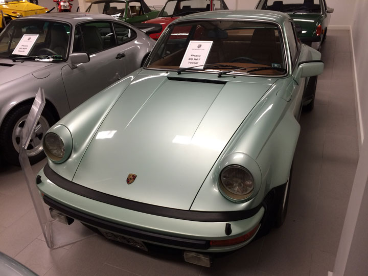 Original mint-green paint and rare "Turbo" decal! This car was shipped to Autohaus Lancaster when brand new and Mr. Wanner used it as his demo up until 1987. The original 911 Turbos (Porsche designation 930) were built for the US market from 1974-'79. This vehicle boasts 234 horsepower at 5500 rpm with a four-speed gearbox, which may not sound like much but, combined with the car's light weight and agility, made it a world-beater in its day. Modern 911s have much-improved suspensions as well, because these early models were famous for teaching the inexperienced a lesson: in a rear-engine car, lifting off the throttle in a turn, let alone hitting the brakes, is an excellent method of swapping ends and going off backwards. It was the end of many of these fine cars.
